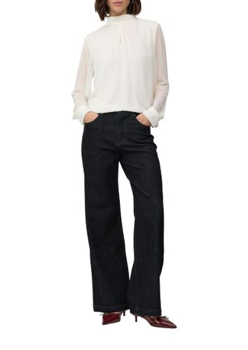 Raffinierte Eleganz trifft zeitlosen Chic: Diese hochwertige Chiffon-Bluse mit aufwendig gearbeitetem Stehkragen und edlen Biesen-Details verleiht deinem Auftritt eine besondere Note. Der fließende Viskose-Stoff und der lockere Schnitt schaffen einen stilvollen Look – vom Business-Meeting bis zum festlichen Dinner.