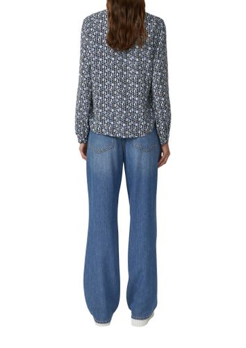 Diese luftig-leichte Tunika-Bluse mit ausdrucksstarkem All-over-Print vereint Komfort und Style. Der fließende Viskose-Stoff, kombiniert mit V-Ausschnitt und femininen Raffungen, macht sie zum perfekten Begleiter für entspannte Casual-Looks.