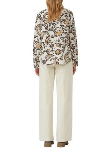 Diese fließende Viskose-Bluse verzaubert mit ihrem verspielten Blumenmuster. Der V-Ausschnitt und die feminine Raffung setzen elegante Akzente, während die elastischen Ärmelabschlüsse für entspannten Tragekomfort sorgen. Ein vielseitiger Begleiter für deine Casual-Looks.