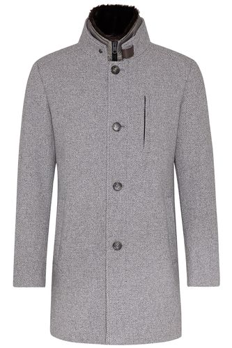 Moderner Stehkragenmantel in 2-in-1-Optik, mit austrennbarem Krageneinsatz. Passt perfekt zum Anzug und ergänzt jeden Freizeitlook mühelos.