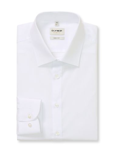 OLYMP Level Five ist das Businesshemd für den schlanken, modebewussten Mann. körperbetonte Schnittführung in Kombination mit modischen Produktdetails. OLYMP Level Five Hemden sind besonders bügelleicht und garantieren einen modisch-souveränen Auftritt. Das unifarbene Weiße Hemd ist ein wahrer Klassiker und kann mit dem eleganten New-York-Kent-Kragen zu jedem Anlass getragen werden. Die taillierte Body-fit-Passform sorgt für grenzenlose Bewegungsfreiheit dank Comfort Stretch.