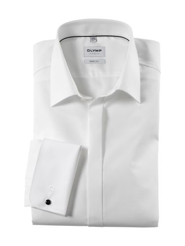 Das Galahemd OLYMP Level Five soirée mit besonderer Eleganz. Das unifarbene hellbeige Hemd bildet mit extravaganten Details wie den Umschlagmanschetten, einem eleganten New-York-Kent-Kragen und der verdeckten Knopfleiste gerade bei festlichen Anlässen die Eckpfeiler des guten Geschmacks. Durch die bügelleichten Eigenschaften präsentiert es sich auch spät am Abend noch makellos. In körpernah-tailliertem Body-fit-Schnitt.<