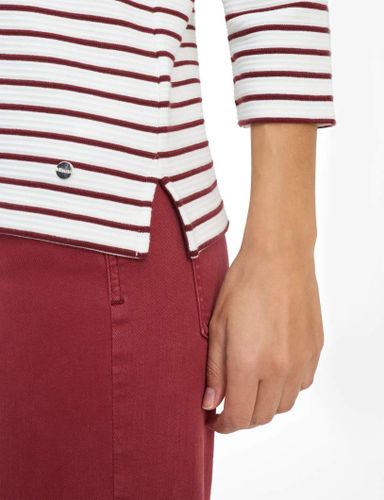 Das Shirt im STYLE BONNIE ist der perfekte Begleiter für die gemütlichen und stimmungsvollen Tage des Herbstes. Mit seiner lässigen Oversized-Silhouette, 3/4-Ärmeln und dem klassischen Rundhalsausschnitt strahlt es eine entspannte Eleganz aus, die sich vielseitig kombinieren lässt. Die feinen Querstreifen verleihen dem Design eine moderne Dynamik, während kleine Saumschlitze als dezente Details für eine charmante Auflockerung sorgen. Gefertigt aus hochwertiger, reiner Baumwolle, bietet dieses Shirt für Damen nicht nur ein angenehmes Tragegefühl, sondern auch eine natürliche Atmungsaktivität, die für höchsten Komfort sorgt. Die Struktur des Materials sorgt für einen angenehmen Griff und unterstreicht die hochwertige Verarbeitung. Dieses Shirt verbindet Stil und Wohlbefinden auf harmonische Weise und wird schnell zu einem unverzichtbaren Lieblingsstück in Ihrer Garderobe.