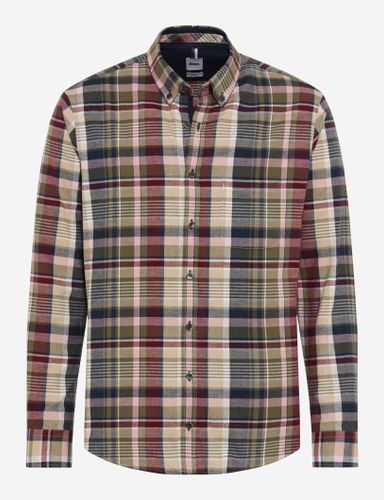 Markante Farben und ein lebhaftes Karo machen das Hemd im Style DANIEL zu einem souveränen Herbst-/Winter-Begleiter für Männer mit Stil. Der klassische Button Down-Kragen sowie die aufgesetzte Brusttasche fügen sich harmonisch in das authentische Design des Herrenhemdes ein. Dank leicht taillierter Silhouette entsteht eine maskuline Passform, die Bewegungsfreiheit und Formgefühl vereint. Das großflächige Karomuster verleiht dem Hemd eine ausdrucksstarke Optik, die sowohl lässig als auch gepflegt kombiniert werden kann. Haptisch überzeugt das Material aus reiner Baumwolle durch seine angenehm weiche Oberfläche. Die Leichtflanell-Qualität sorgt für ein behagliches Tragegefühl – wärmend, hautfreundlich und besonders komfortabel. Damit eignet sich das Hemd ideal für stilvolle Freizeitlooks in der kühleren Jahreszeit.